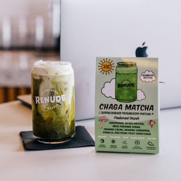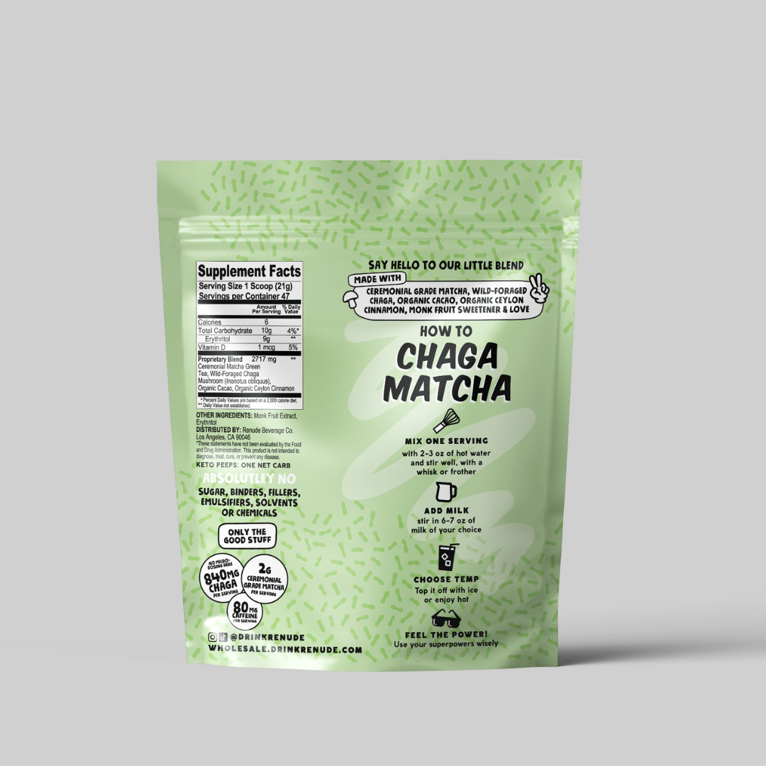 Elevate your matcha game with this unique blend that appeals to all taste buds. We've combined premium ceremonial grade matcha with wild chaga, cacao, cinnamon, and monk fruit for a delicious, energizing treat.